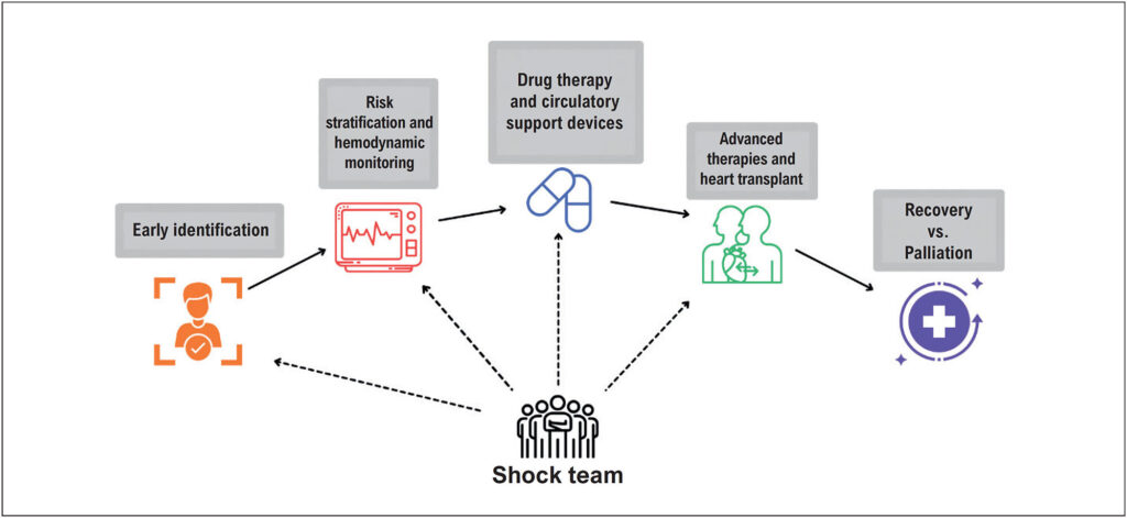 Cardiogenic shock is a clinical condition with an increasing incidence that presents with tissue hypoperfusion, leading to multiorgan dysfunction with a high mortality rate. Non-ischemic cardiogenic shock has been recognized as an important cause of shock in emergency rooms, with an incidence exceeding that of shock related to acute myocardial infarction (AMI) in some populations. Recent data from the Cardiogenic Shock Working Group (CSWG), an international multicenter registry, reveals that the mortality rate for this condition varies from 22 to 32%, depending on the type of institution.
