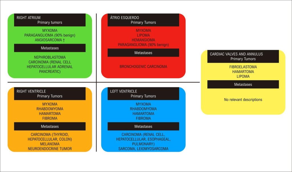 Cardiac tumors are considered rare clinical entities and can affect any cardiac tissue. Metastatic (secondary) cardiac tumors are more frequently diagnosed than primary tumors (malignant or benign). Both types can cause valve and/or inflow and outflow tract obstructions in any cardiac chamber, leading to symptoms of heart failure, as well as embolization and arrhythmia. Treatment of benign tumors is usually surgical, and that of metastatic and primary malignant tumors will depend on their origin and type, with poor prognosis. Recurrence of benign tumors is frequent. The aim of this article is to provide the clinician with tools to optimize diagnosis, differential diagnosis, and treatment of tumors with obstructive features causing heart failure.