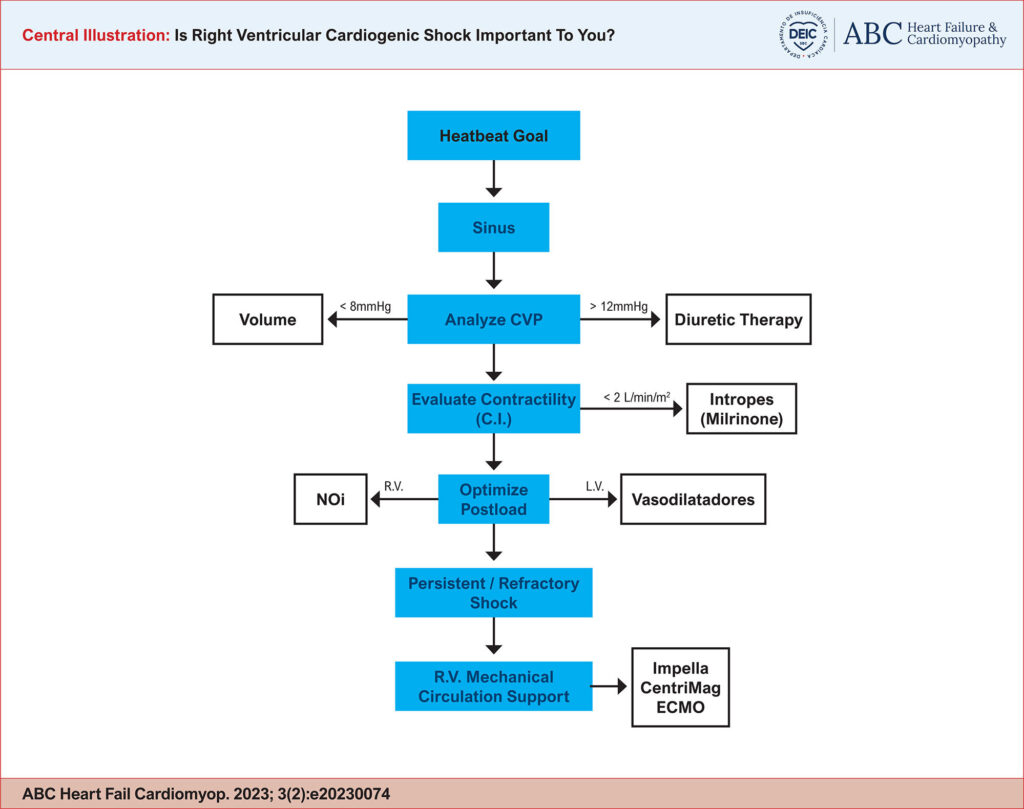 In the scenario of cardiogenic shock, attention was almost exclusively focused on the left ventricle (LV). Currently the concept that the circulatory system involves the interdependence between the LV and the right ventricle (RV) has been reinforced, and researchers seek to achieve a clearer understanding of the role of the right ventricle in cardiogenic shock.