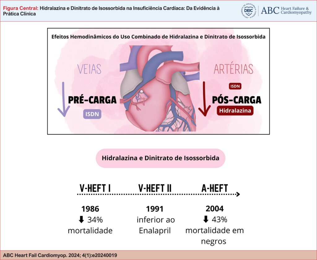 O tratamento da Insuficiência Cardíaca (IC) com Fração de Ejeção reduzida (ICFEr) evoluiu significativamente ao longo do tempo, com a emergência de várias farmacoterapias, visando diferentes vias fisiopatológicas. Enquanto antagonistas neuro-humorais como Inibidores da Enzima Conversora de Angiotensina (IECA) e betabloqueadores tornaram-se terapias de primeira linha, a principal mudança de paradigma ocorreu com medicações com efeitos vasodilatadores, incluindo a combinação de hidralazina e dinitrato de isossorbida (H-ISDN). Embora o papel da H-ISDN tenha sido ofuscado ao longo do tempo, ele continua significativo, particularmente em algumas populações.