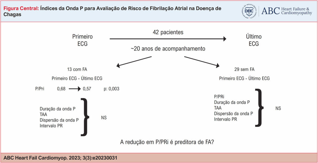 Estudos que analisaram a ativação atrial no eletrocardiograma (ECG) geralmente destacaram a duração e a dispersão da onda P, o intervalo PR, a razão P/Pri, e o Tempo de Ativação Atrial (TAA). Embora esses índices possam ser preditores da Fibrilação Atrial (FA) em diferentes contextos clínicos, nenhum estudo analisou-os no contexto da Doença de Chagas (DC).